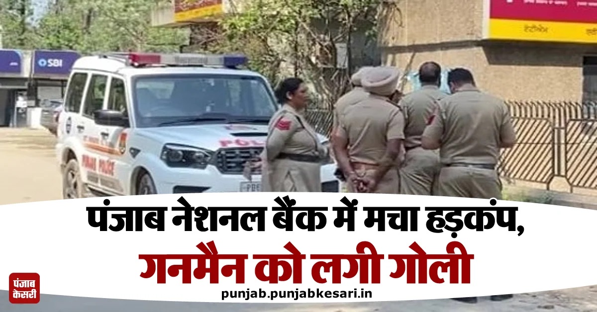 पंजाब नेशनल बैंक में मचा हड़कंप, गनमैन को लगी गोली