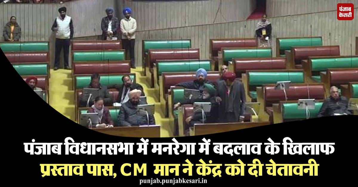 चंडीगढ़ : पंजाब विधानसभा के स्पेशल सेशन के दौरान केंद्र सरकार द्वारा मनरेगा में बदलाव का विरोध किया और इस बदलाव के खिलाफ प्रस्ताव पास किया गया। यह प्रस्ताव मंत्री तरुणप्रीत सिंह सौंद ने सदन में पेश किया, जिसे सदन में सर्वसम्मति से पास कर दिया गया।