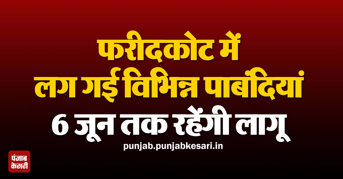 फरीदकोट में लग गई विभिन्न पाबंदियां, 6 जून तक रहेंगी लागू