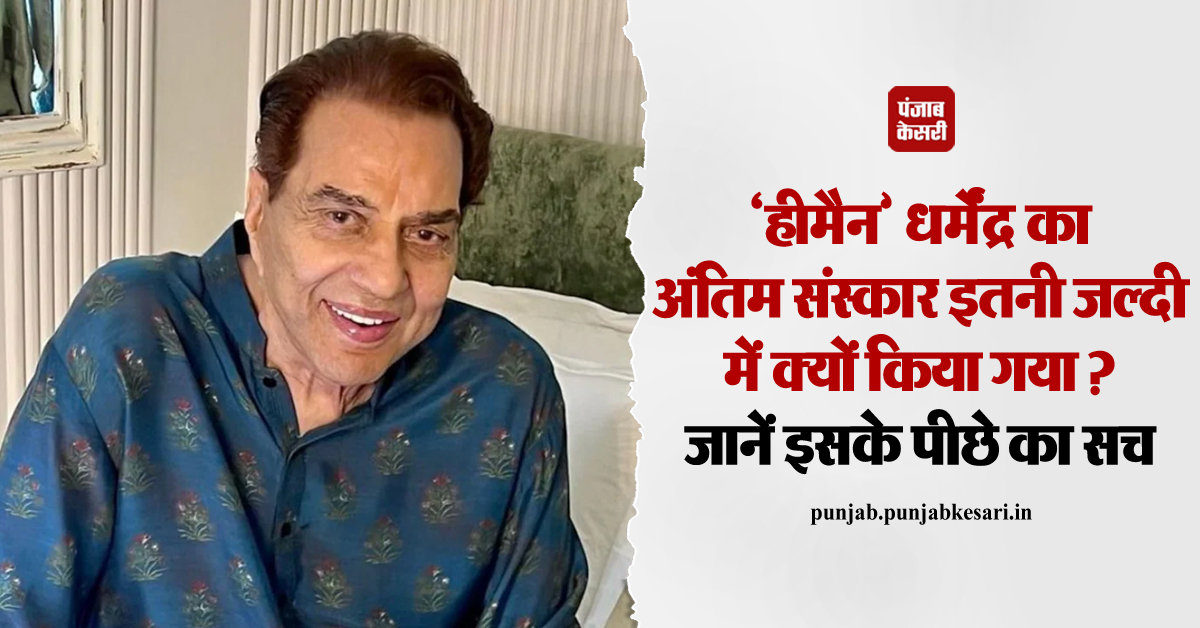 पंजाब डेस्क: बॉलीवुड के महान अभिनेता धर्मेंद्र, जिनके नाम से ही सिनेमा जगत में एक समय में तूफान मच गया था, का 89 वर्ष की उम्र में निधन हो गया। उनके निधन के बाद उनका अंतिम संस्कार कुछ ही घंटों में किया गया, जिससे फैंस और मीडिया में कई सवाल उठ रहे हैं। लोग जानना चाहते हैं कि आखिर क्यों धर्मेंद्र का अंतिम संस्कार इतनी जल्दी किया गया और परिवार ने उनका अंतिम दर्शन क्यों नहीं करवाया।