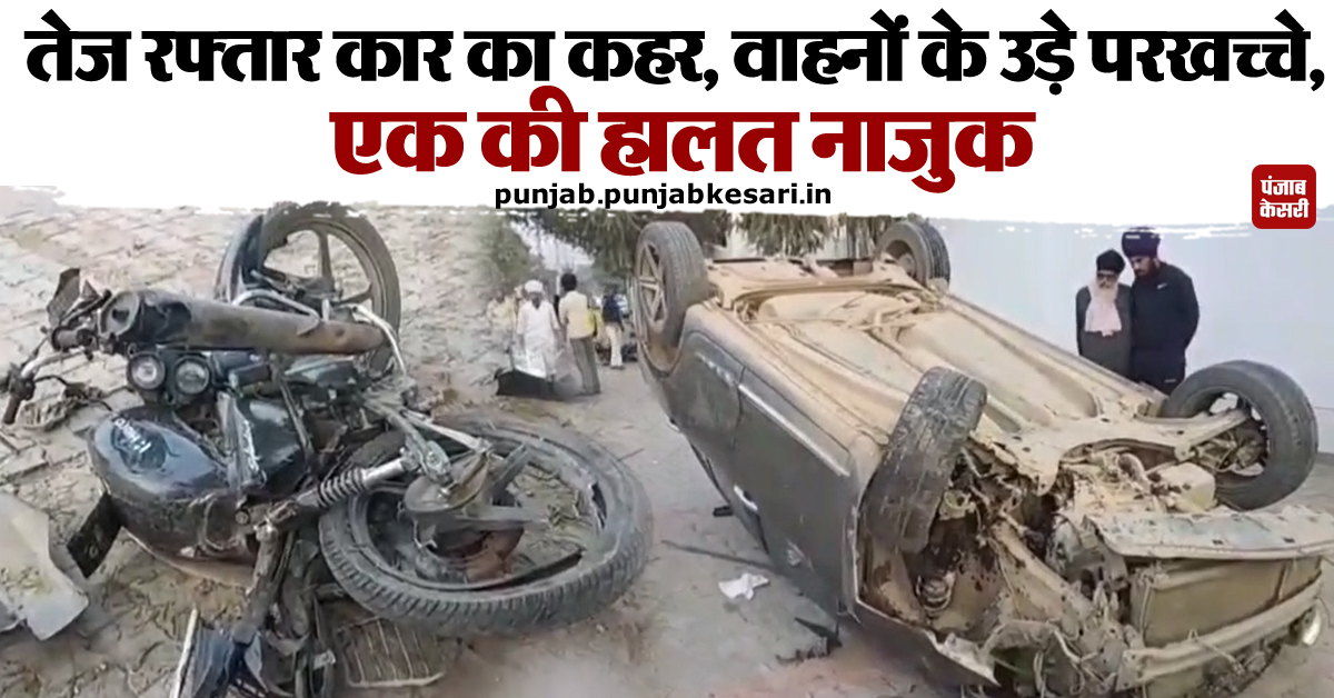 तेज रफ्तार कार का कहर, वाहनों के उड़े परखच्चे, एक की हालत नाजुक