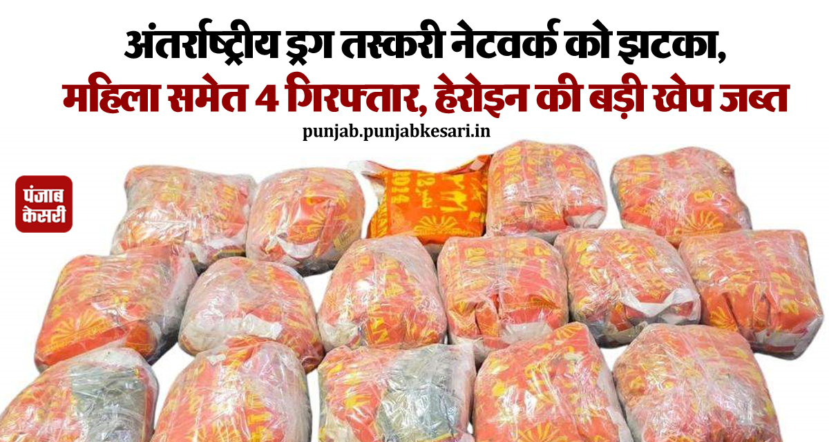 अंतर्राष्ट्रीय ड्रग तस्करी नेटवर्क को झटका, महिला समेत 4 गिरफ्तार, हेरोइन की बड़ी खेप जब्त