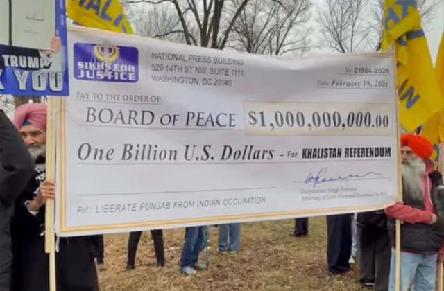 वाशिंगटन (सरबजीत सिंह बनूड़) — अमेरिका की राजधानी वॉशिंगटन डी.सी. में खालिस्तान समर्थकों की ओर से राजनीतिक गतिविधि देखने को मिली, जहां सिख्स फॉर जस्टिस (SFJ) ने ‘बोर्ड ऑफ पीस’ की पहली आधिकारिक बैठक के दौरान 1 बिलियन अमेरिकी डॉलर का प्रस्ताव पेश किया। इस मौके पर अमेरिका भर से पहुंचे सिखों ने “खालिस्तान पीस रैली” में भाग लेकर अपनी राजनीतिक मांग दोहराई।