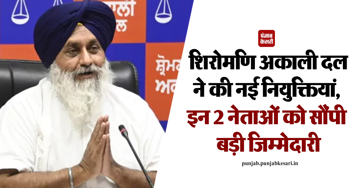 शिरोमणि अकाली दल ने की नई नियुक्तियां, इन 2 नेताओं को सौंपी बड़ी जिम्मेदारी