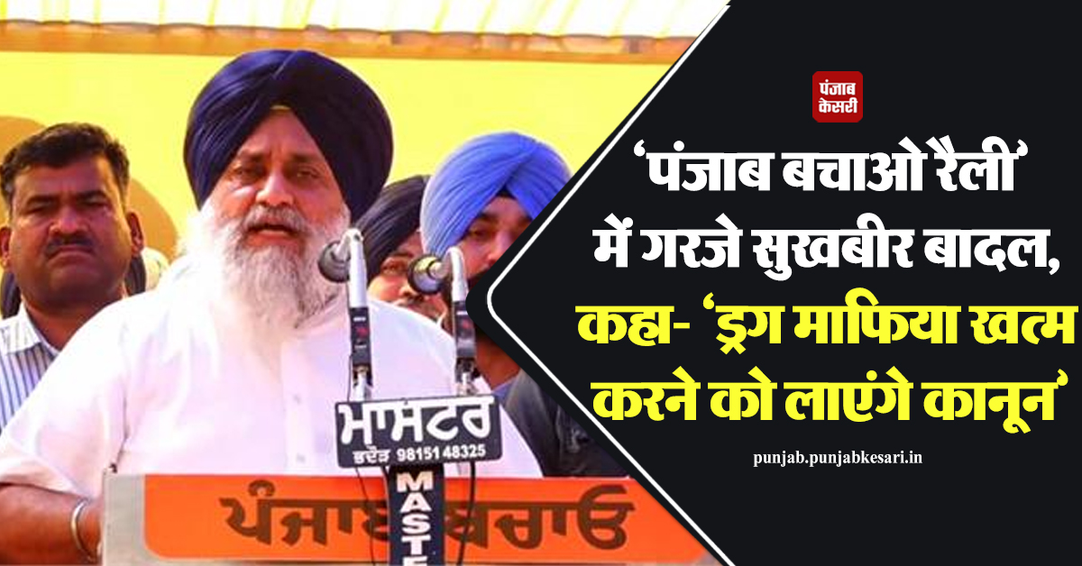''पंजाब बचाओ रैली'' में गरजे सुखबीर बादल, कहा- ‘ड्रग माफिया खत्म करने को लाएंगे कानून’