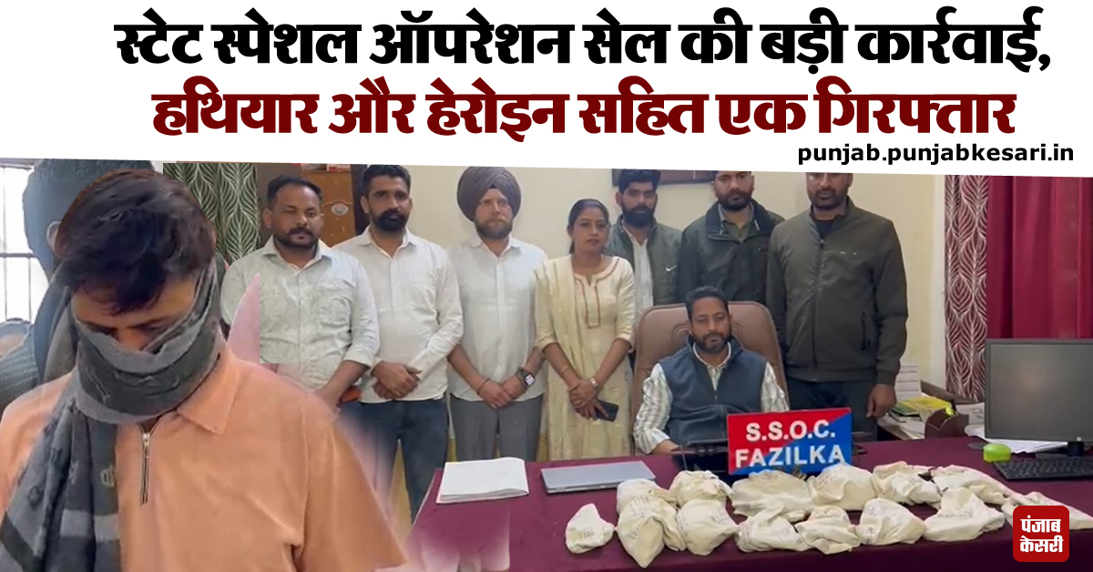 Punjab : स्टेट स्पेशल ऑपरेशन सेल की बड़ी कार्रवाई, हथियार और हेरोइन सहित एक गिरफ्तार