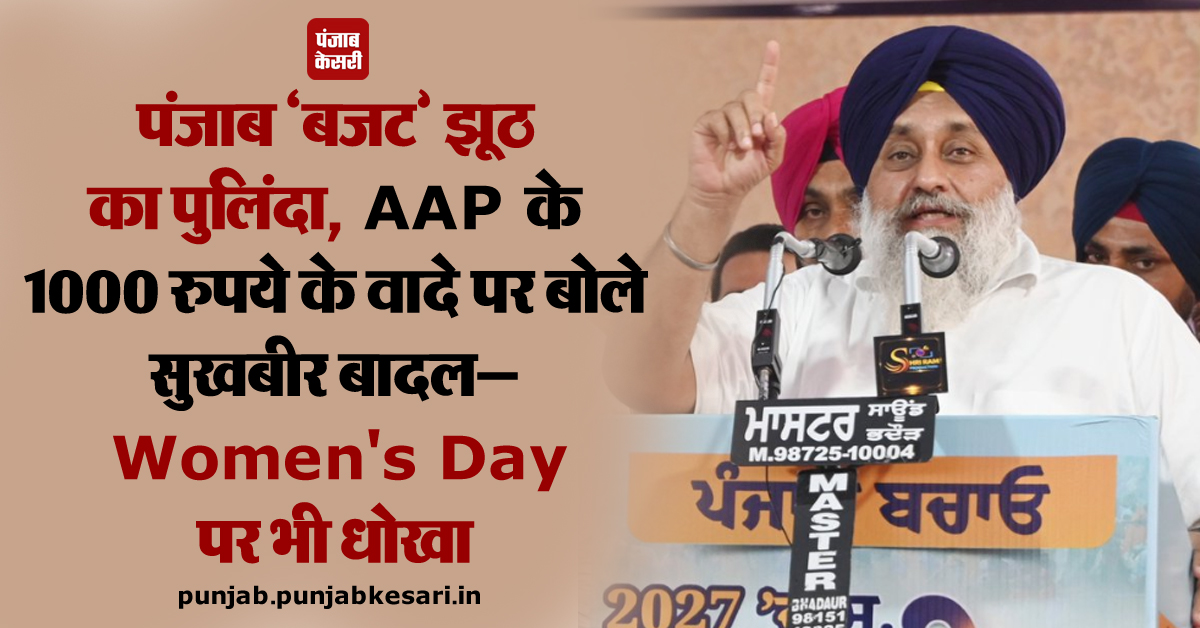 पंजाब ''बजट'' झूठ का पुलिंदा, AAP के 1000 रुपये के वादे पर बोले सुखबीर बादल— Women''s Day पर भी धोखा