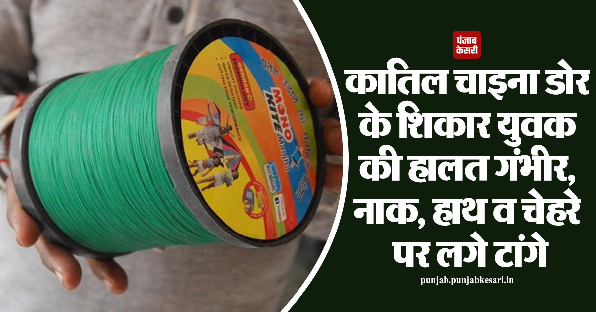 कातिल चाइना डोर के शिकार युवक की हालत गंभीर, नाक, हाथ व चेहरे पर लगे टांगे