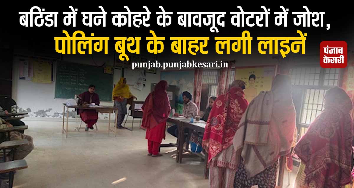 बठिंडा में घने कोहरे के बावजूद वोटरों में जोश, पोलिंग बूथ के बाहर लगी लाइनें
