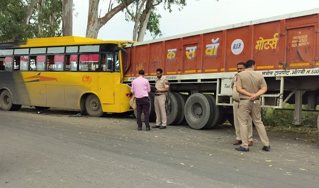 हाजीपुर-तलवाड़ा मार्ग पर बस और ट्राले की भीषण टक्कर, चालक सहित 10 लोग गंभीर रूप से घायल