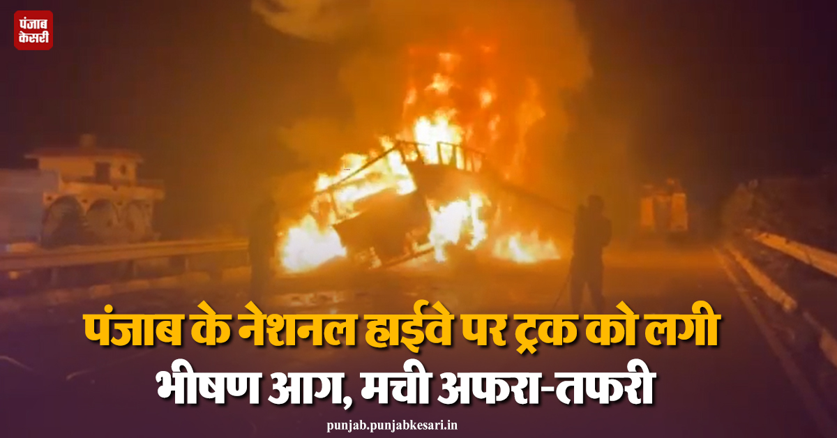 पंजाब के नेशनल हाईवे पर ट्रक को लगी भीषण आग, मची अफरा-तफरी