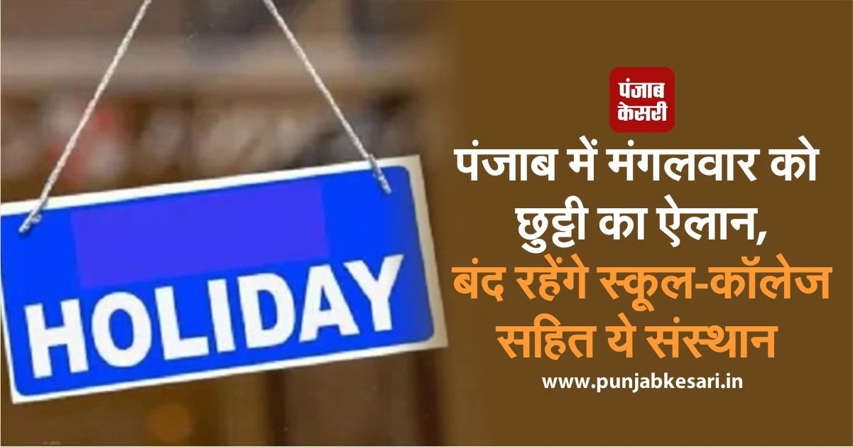 पंजाब में मंगलवार को छुट्टी का ऐलान, बंद रहेंगे स्कूल-कॉलेज सहित ये संस्थान