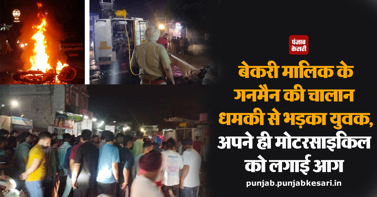 बेकरी मालिक के गनमैन की चालान धमकी से भड़का युवक, अपने ही मोटरसाइकिल को लगाई आग